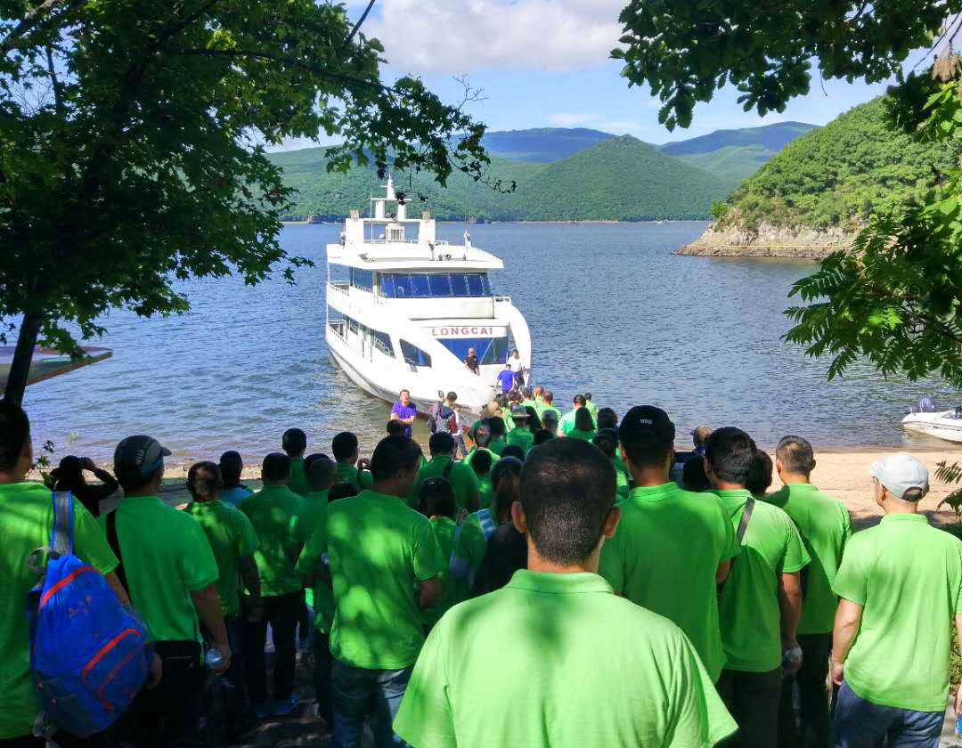 11日早餐過(guò)后,所有人整裝齊發(fā),準(zhǔn)備到鏡泊湖上觀光。集團(tuán)租用鏡泊湖上對(duì)外營(yíng)業(yè)中的最豪華的船,開(kāi)啟了鏡泊湖湖上之旅。