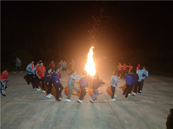 到了晚餐時分,開餐前副總經理王磊發表講話,感謝公司的用心安排和伙伴的熱情款待,讓所有員工能夠更好的享受旅游過程。除了豐盛的晚餐,還準備了烤全羊,喝酒吃肉看演出,抽獎游戲不停,獎品不停,笑聲不停。每個部門都用心準備了節目,緊扣旅游主題,熱愛贊美富通,室外然然篝火點燃熱情,空中璀璨煙花五彩繽紛,富通人圍著篝火載歌載舞,預示著下一階段事業紅紅火火,工程項目遍地開花。